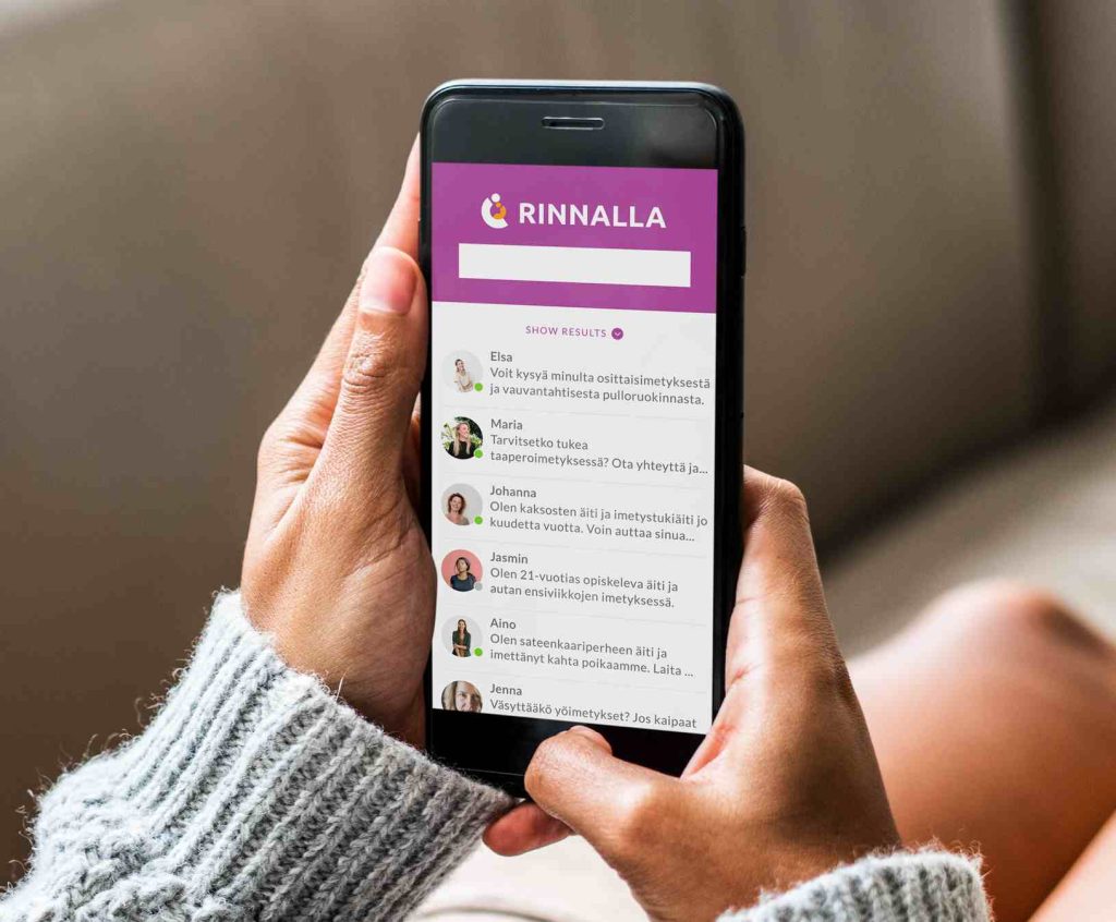 Kun imetys huolettaa, tavoitat imetystukivanhemman nopeasti Rinnalla-sovelluksen kautta. Sovellus tarjoaa sinulle maksutonta, koulutettua vertaistukea imetykseen ja vanhemmuuteen.